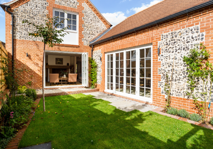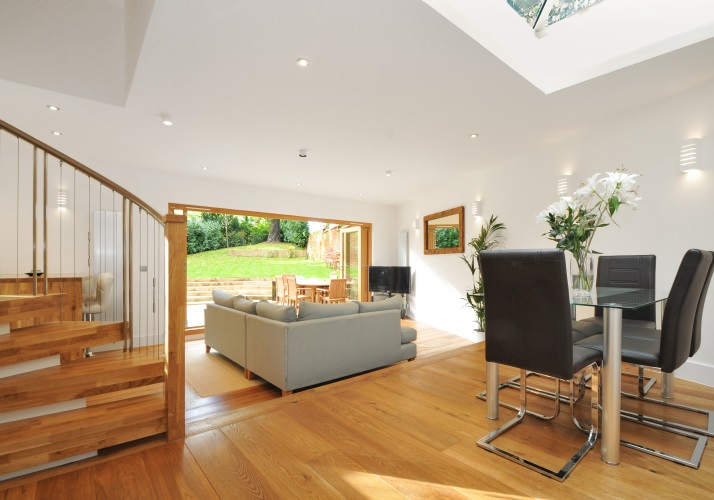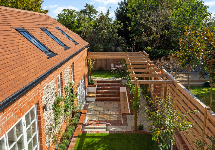This opportunity came as an infill of land with a small but substantial brick & flint shed sited towards the front of the property. Located close to Henley-on-Thames and sold to us by agents with planning consent for the demolition of the existing building and erection of a single new 4 bedroom house. It was imminently clear the overall internal design had been poorly conceived and offered considerable scope for improvement by increasing the habitable footprint through the creation of an upper floor at the rear and reconfiguring the layout so as to open up the interior and allow substantially more light to penetrate into the heart of the building, aided by the creation of a central double height space.