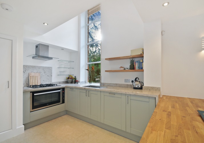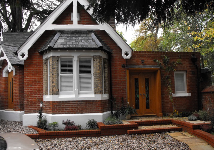 Originally a gate lodge to a large manor house now demolished, this property was suffering badly from subsidence resulting from the nearby cedar tree roots and, although locally listed, was semi-derelict when we acquired it. Planning consent was obtained to knock down the ugly 1960's 'add-ons' at the rear and rebuild that part in the prevalent 'Arts & Crafts' style, creating a contemporary open plan and spacious 3 bedroom cottage in a landscaped garden.